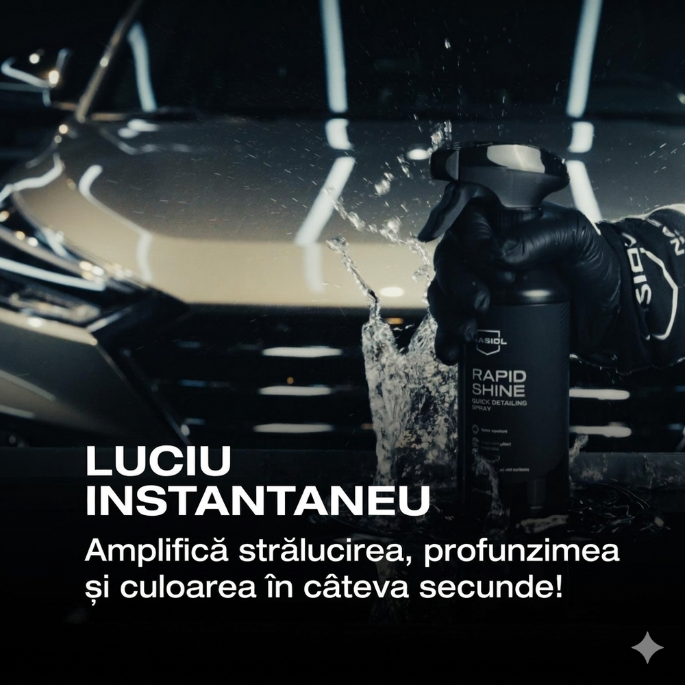 ✅ RapidShine este un quick detailer pe bază de apă, ușor de utilizat, care oferă un efect de culoare profundă și hidrofobicitate.